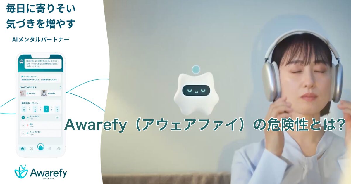「Awarefy(アウェアファイ) 危険性」というキーワードで検索をかけると、AI依存、医療遅延、データ漏洩といった不安を煽る情報が散見されます。